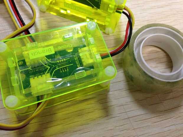 1. doble cinta adhesiva de cara (utilizado se muestra en la foto 2) es muy pegajosa. Es un buen material para cosas comunes pero si quieres una superficie limpia de todos los módulos de Grove, le sugiero que para cubrir la superficie primero con cinta scotch transparente. Como en la foto 3.
