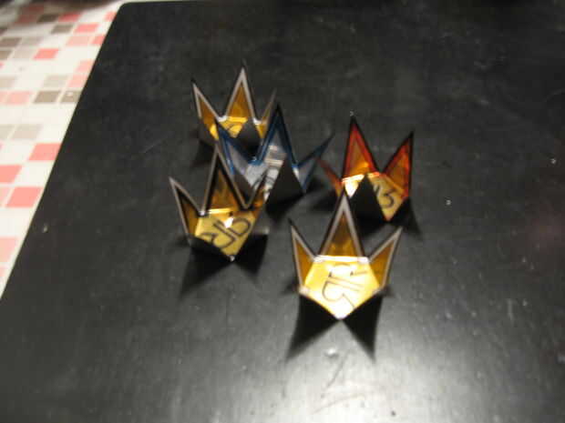 Ahora tienes doce estrellas rittle. Un poco bastante por su propia cuenta. Tomar los puntos y doblar hacia el centro. Logo que muestra o no depende de usted. Lo hice el logo en el exterior. No doble ni tuerza los! Aluminio es delgado suficiente esto destacar el metal y romperlo, haciendo ese pedazo de inútil para este proyecto.