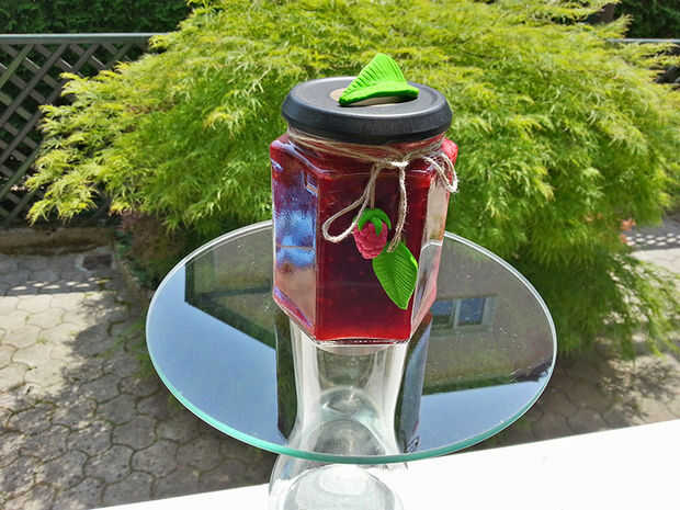 Ahora es tiempo de ser creativo y hacer muchos adornos diversos mermelada bonita y colorida. Enrolle un poco de barro naranja para hacer melocotones o Albaricoques, añadir un pequeño trozo marrón para convertirlos en naranjas o empezar con amarillo para hacer limones. poner un grupo de bolas de color púrpura en una verde "hoja" para arándanos. Empezar como se hizo con frambuesas sólo hace una base más grande y rojo y saltar bolas que se pegan a él. Agregar hojas y viola: tienes fresas!
