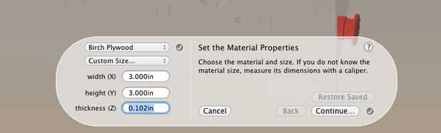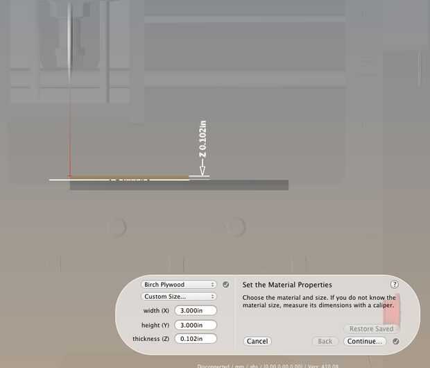 Ingrese las especificaciones material en "Sistema material". Asegúrese de ajustar el espesor del material que el espesor total de la capa de sacrificio y la pieza de madera que desee cortar.