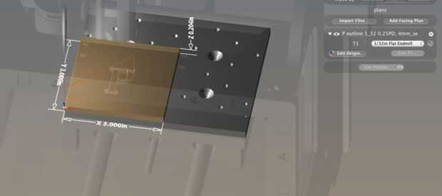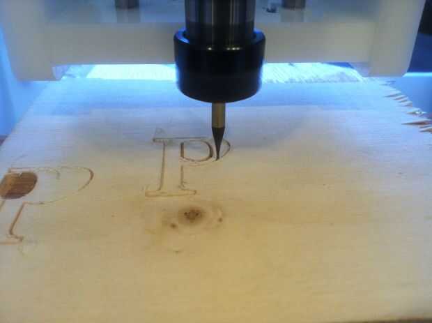 Importar el archivo de Esquema P y cambiar su herramienta para el molino de punta plana de 1/32" otra vez. Una vez que has importado el archivo y pasado a través del procedimiento de "Localización" de la herramienta, usted está listo para cortar una vez más. Cuando se termina esta pequeña "P" de corte, todo lo que necesitas hacer es presionar en el bolsillo en forma de P.