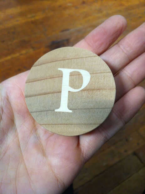 Utilizamos un martillo de goma para press-fit color claro "P" en el bolsillo. Nada sofisticado: solo Alinee los bordes de la "P" como mejor puede y le dan un toque poco. Hay un clip de vídeo de este proceso de encaje a presión.