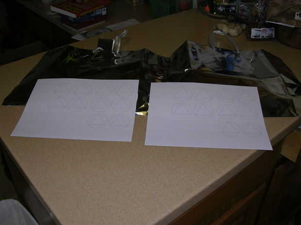 Hacer copias de 20 círculos con triángulos equiláteros inscritos en el círculo.