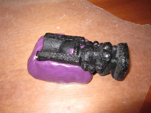 Comprar algunos "masilla de molde increíble" u otra temperatura, arcilla de silicona de vulcanización.  Simplemente siga las instrucciones en la caja para la mezcla de la arcilla.  Luego agarra su tiki (utilicé un pequeño uno - sobre 4 pulgadas de alto) y presione en la arcilla hasta que configura (15 minutos)