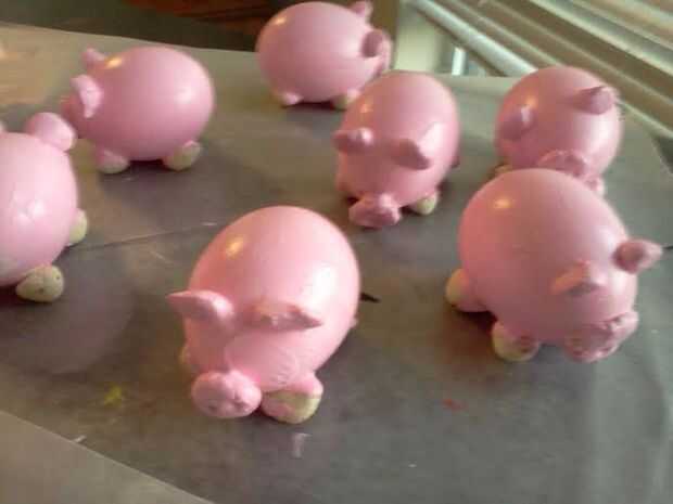 3. recorte un limpiapipas rosa en pedazos de una pulgada y enrollamiento de la cola, inserte otro agujero en el cerdo