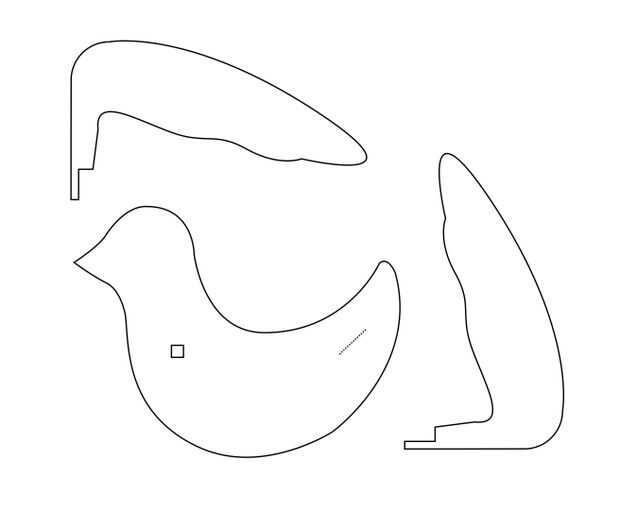 1. utilizando un lápiz de trazo, transfiera la plantilla sobre el fieltro industrial. Usando un cuchillo fabricación, recorte de la plantilla. Asegúrese de que no hay que olvidar hacer el corte para el portapilas (líneas discontinuas) cerca de la parte posterior de la paloma.