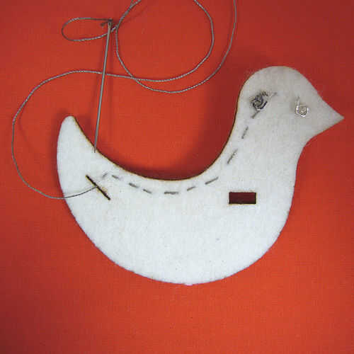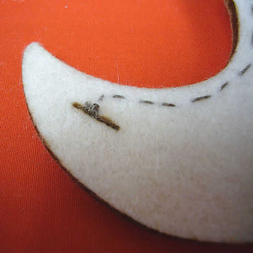 7. con el hilo conductor, coser bien el plomo negativo para el fieltro, bucle del hilo alrededor de la cabeza varias veces. Entonces, usando el mismo hilo, coser un camino hacia la parte superior o inferior de la ranura de la batería, bucle el hilo varias veces para crear un buen punto de contacto de la batería. Este será el contacto negativo de la batería.
