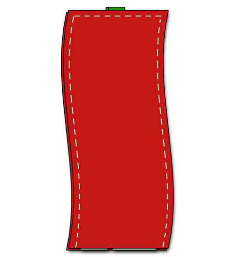Coser los lados y la parte superior y deje abierta la parte inferior. Asegúrese de que coser a través de la cinta verde.