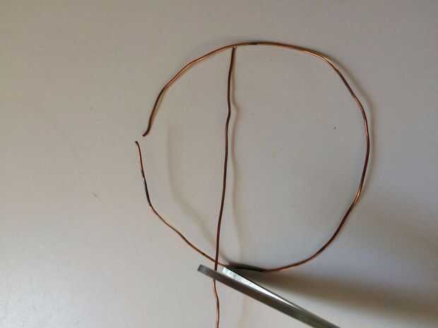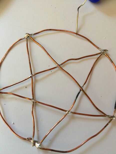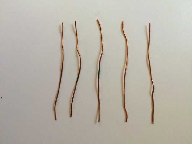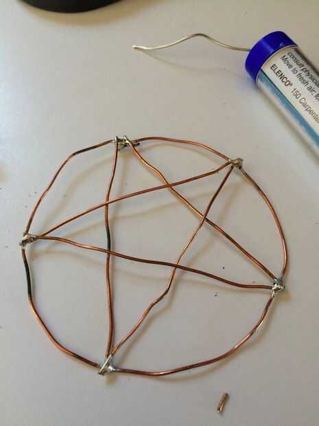 1. corta 5 trozos pequeños de alambre como la estrella dentro del círculo. Debe ser al menos el diámetro del círculo, pero puede ser más largos. Para el pedazo de 9 pulgadas que usé en el último paso, las piezas deben ser al menos de 2 3/4 pulgadas.