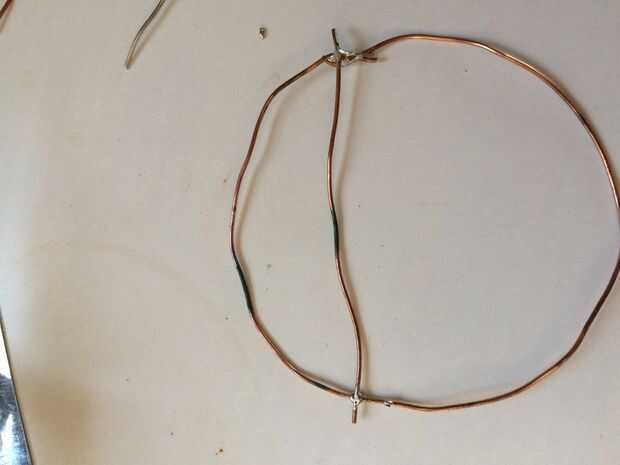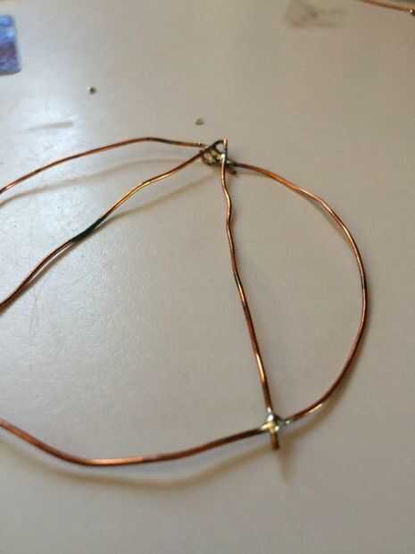 2. a partir de la unión soldada, comenzar por un extremo de un cable interno para eso empalme de la soldadura. La razón de comenzar aquí puesto que ya hay alguna soldadura allí, es más fácil para los cables a. Luego suelde el otro extremo del alambre interior al círculo exterior. A menos que quieras tu estrella para ser exactos, no importa donde usted la soldadura de ese fin.