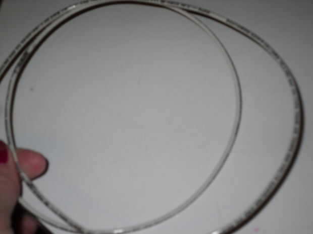 Empezar por comprar o encontrar algún cablecillo. He comprado el cable que usé en Home Depot, tenían algunos diversos colores y tamaños para elegir pero elegí el blanco porque yo planeaba hacer este bastón de caramelo de adorno de aro de hula que color!