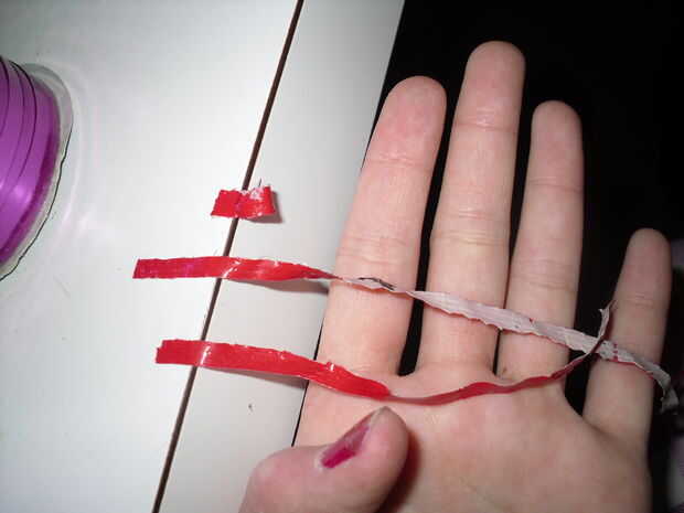 Puesto que usted está haciendo una escala abajo aro modelo que probablemente necesita cortar la cinta utiliza hasta una anchura más adecuada. Afortunadamente, si usted está usando una cinta de color pato será fácil hacer un trozo incluso agradable a lo largo de la cinta. Gracias a las líneas perforadas en la cinta de pato!