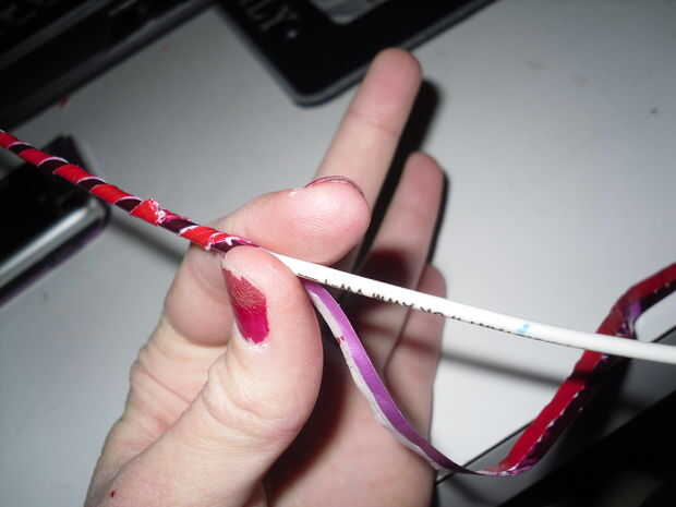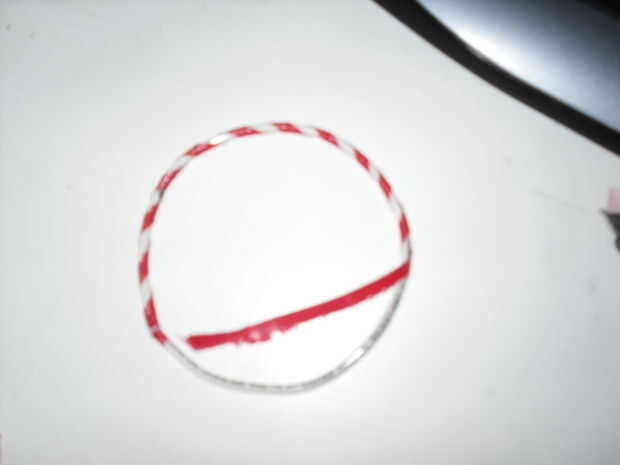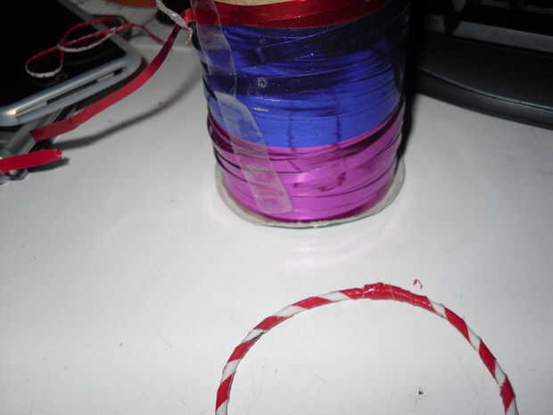 Después de crear mi bastón de caramelo inspirado adorno de aro, encontré algunos muy brillante de la cinta. Acabé teniendo la burocracia re envolviendo con la cinta bastante con la burocracia y el ornamento. La cinta realmente añade al ornamento porque refleja las luces de los árboles lo suficiente como para conseguir notado.