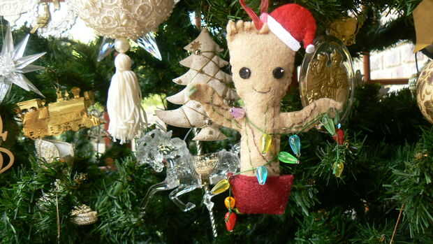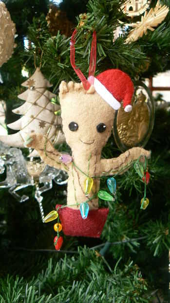 Dar a baile bebé Groot de guardianes de la galaxia una oportunidad para agregar al espíritu navideño esta temporada haciendo este ornamento de Groot lindo, festivo. Este pequeño árbol-bebé es decorada hasta en las luces de Navidad y un sombrero de Santa, así lo muestran en su propio árbol!