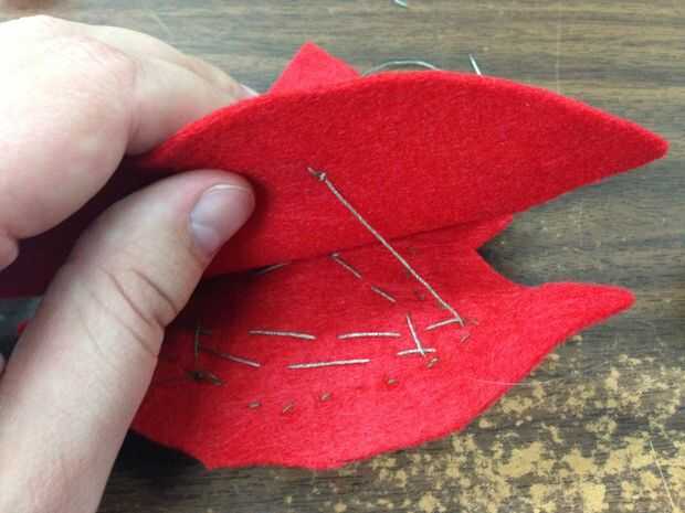 Dejar un montón de hilo suelto colgando entre los dos lados, como vamos a llenar esta cosa con relleno.