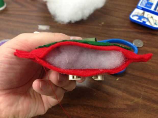 Relleno es complicado, sobre todo porque tenemos dos hilos colgando hacia abajo de la media.