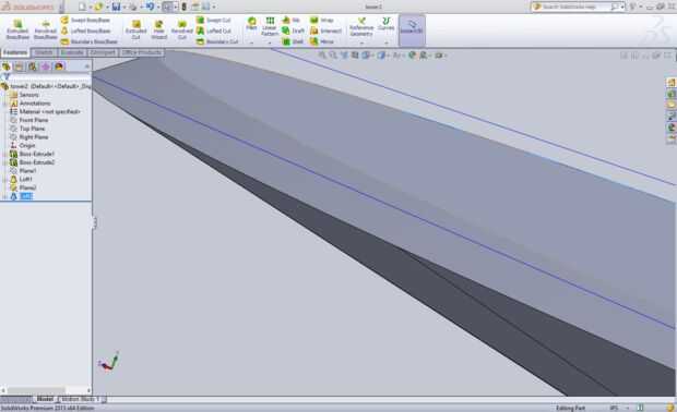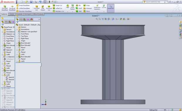 Para construir la plataforma de observación, comenzar por crear un plano de conjunto 1,3 pulgadas fuera del plano superior. Dibujar un círculo centrado en 0,75 pulgadas de diámetro en este plano y crear una característica tipo loft seleccionar el círculo que acaba de hacer y la cara del cilindro dodecagonal. Crear un segundo plano 1,31 pulgadas desde el plano superior, dibujar un círculo de 0,74 pulgadas en él. Loft entre la parte superior de la primera loft y este nuevo círculo. Esta será la base de la observación. Saca 0,1 pulgadas arriba desde el loft nuevo con su borde para definir la extrusión. Para terminar la cubierta, crear un 3er plano 1,42 pulgadas por encima del plano superior y dibuja un círculo de diámetro 0,75 pulgadas en este plano. Loft entre este círculo y la parte superior del cilindro que a sacado.