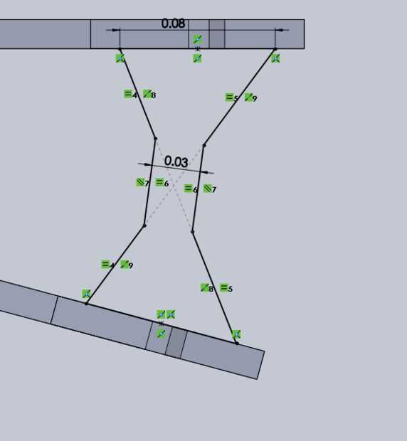 Posición las líneas 2 y 8 en el centro de la pequeña espiga primero dibujo un punto en el punto medio de la espiga pequeña y restricción que es el punto medio de las líneas así.