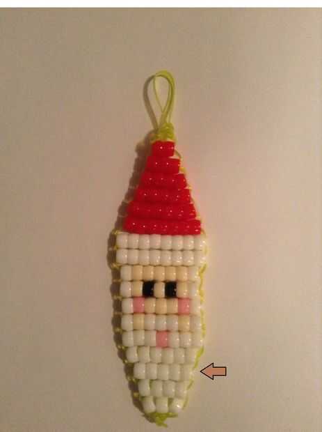 1. poner 5 granos blanco en un extremo de la cadena/cordón