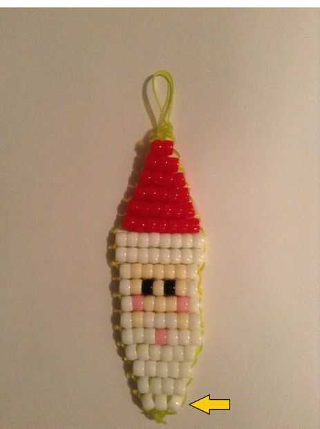 1. poner 3 granos blanco en un extremo de la cadena/cordón