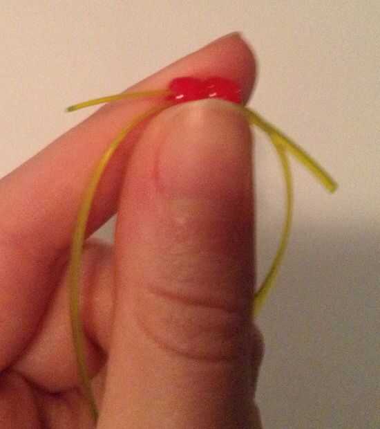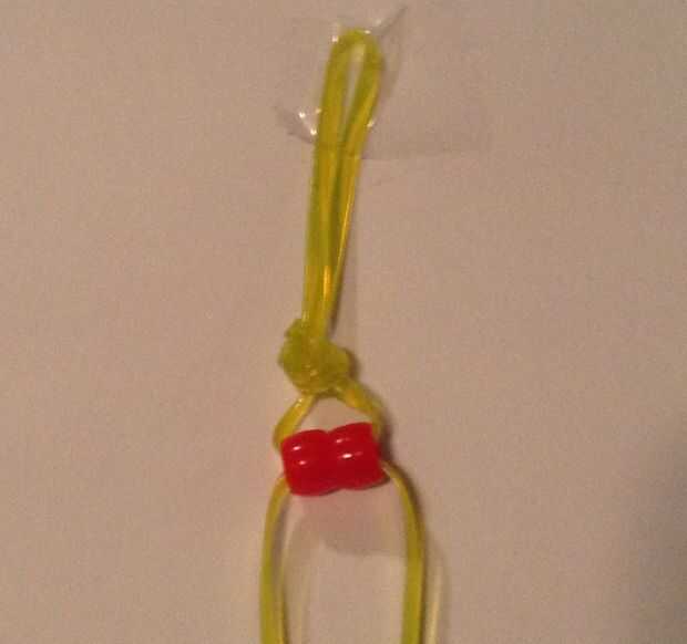 1. poner 2 granos rojo en un extremo de la cadena/cordón