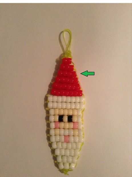 1. Ponga 4 granos rojo en un extremo de la cadena/cordón