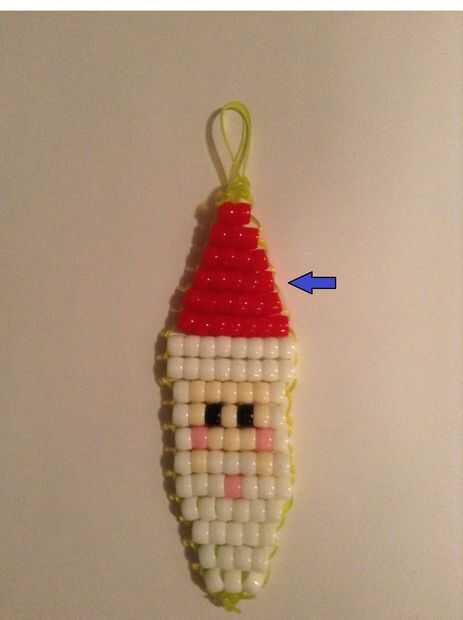 1. poner 5 granos rojo en un extremo de la cadena/cordón