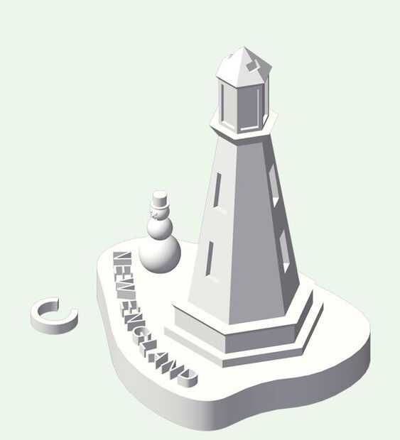 Después de varias impresiones, se hizo evidente que no pude imprimir el anillo para colgar el ornamento de sin apoyos. Para resolver este problema, he creado las muescas en la cubierta del faro para aceptar un anillo de división que podría ser impreso sobre la cama.