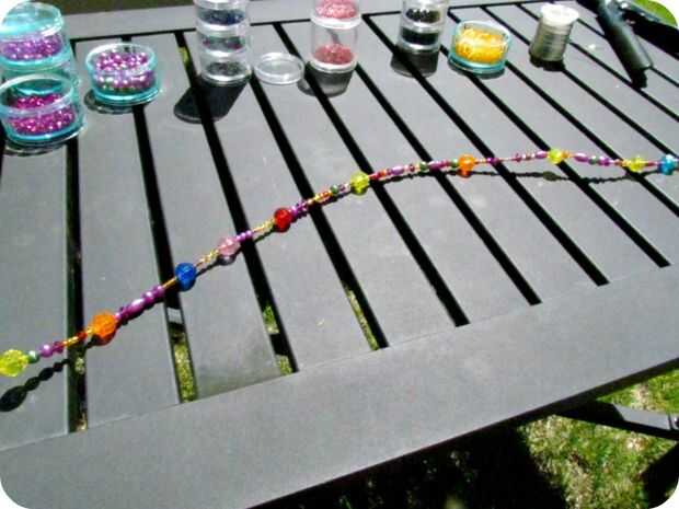 Cadena en sus cuentas.  No preocuparse por diseño o el patrón, sólo divertirse y tirar en willy nilly.