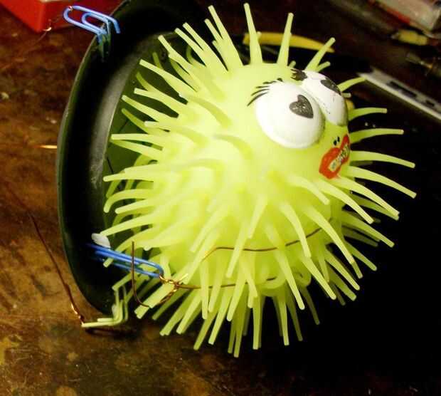 Marque dos puntos y pegar 2 clips a los lados 180 grados aparte. Esto es para el montaje de la bola.