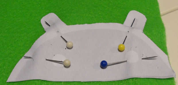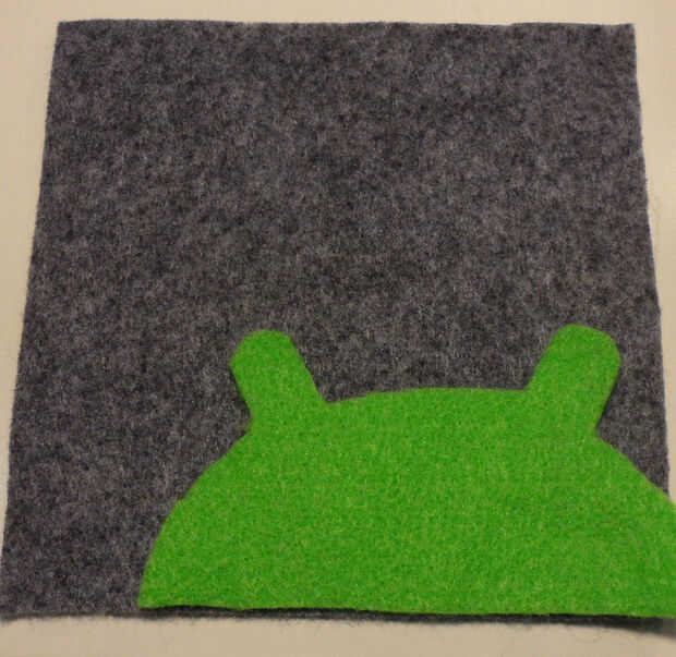 Cortar 2 4 1/2 "X 4 1/2" piezas de tela de fondo. De un patrón, cortar el Android, pasador de fieltro, de cal y corte.