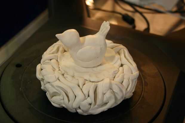 Annelle, mi esposa, había diseñado el pájaro y el nido con arcilla polimérica. Había analizado la figura de arcilla con un digitalizador de MakerBot.