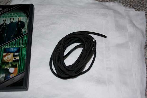 En este ejemplo, estoy usando negro 550 paracord. Tomé hacia fuera aproximadamente 11,5 pies / 345cm de cuerda.