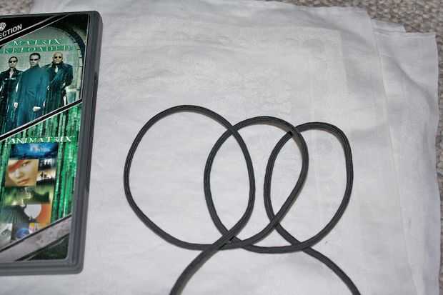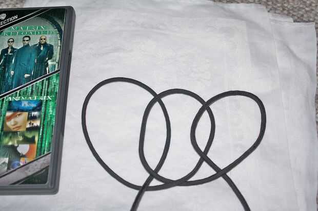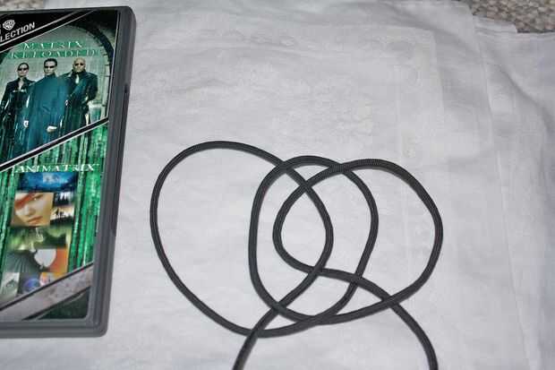 Hacer tres Cotes, uno tras otro. Entonces "invertir" ellos - poniendo cada enganche más adelante al frente de la hebra de la cuerda anterior. El resultado debe ser tres tirones que se apilan en el orden "incorrecto", por lo que las intersecciones entre ellos sobre todo alternan. El nudo-teóricamente inclinados verlo como tres movimientos de Reidemeister 1, seguidos de cantidades apropiadas de movimientos de Reidemeister 2.