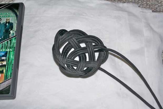 Esta formación se hace apretando el nudo alrededor de sí mismo - no demasiado, que podrá resultar en un nudo demasiado pequeño - mientras se mueve el juego a través del nudo tirando de la cuerda sobrante alrededor de y alrededor a través del nudo hasta que llega a uno de los extremos sueltos. Esta parte puede ser un poco tediosas, pero me resulta relajante y agradable - algo para hacer tus manos mientras haces alguna otra cosa. Este nudo fue creado mientras ve piezas de la primera película de Matrix y Cirque du Soleil!