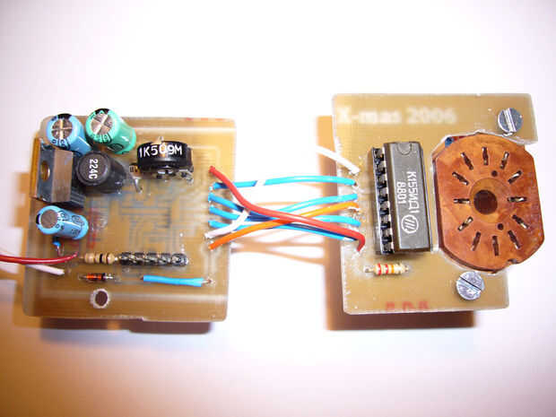 3. un microcontrolador, un microcontrolador PIC une todo, funciona la fuente de alimentación y cambia los dígitos que se muestra en el tubo de nixie a través de un interfaz de cuatro cables para el controlador de tubo IC (ver anterior).