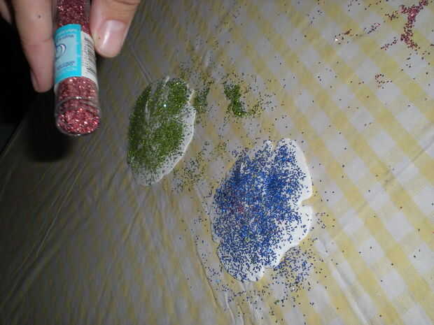 3. Agregue el brillo! Usar como mucho o como poco brillo que quieras. Se pueden utilizar un color o muchos colores juntos.