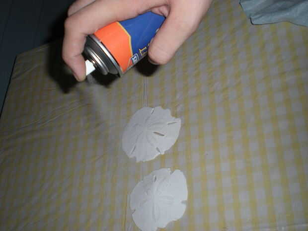 2. Rocíe conchas con el adhesivo en aerosol. (o aplicar pegamento si usas pegamento regular)
