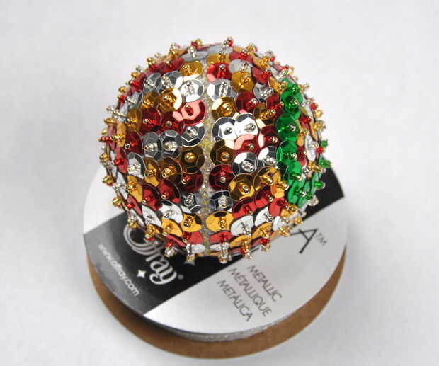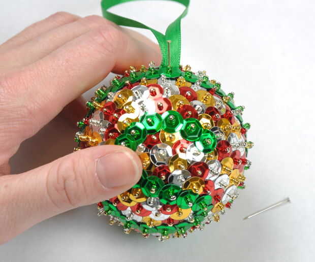 - Colocar las lentejuelas y poner el pin a través del medio asegurándose de que no golpear los otros triunfos. Ahora, usted puede pegar este último lentejuelas abajo si te gusta, pero los dos pasadores extras deben pulsado la cinta e impedir que las lentejuelas superior viene de. Pero, no agarrar y tirar de él o nada.