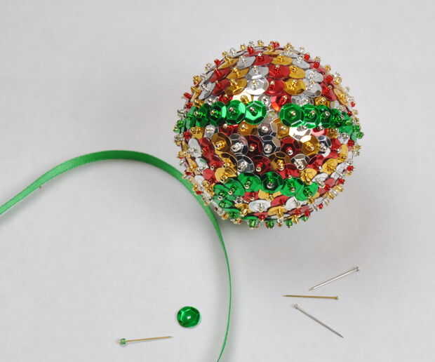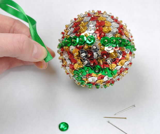 - Tomar uno de los pines, en una perla y un último lentejuelas.