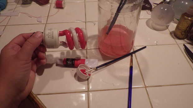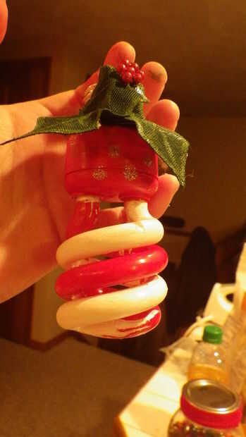 Para el CFL pensé en bastones de caramelo cuando lo vio y pintó en consecuencia. Una vez pintado, decidí añadir una vuelta de tuerca en la parte inferior por lo que parece que combina el dulce y rematado apagado con holly por lo que no parecía tan simple como añade un poco de brillo (placer culpable). Usé pintura acrílica, su agua base y limpia apagado muy fácilmente si usted comete un error. Hice el adorno capaz de colgar envolviendo alambre floral alrededor de la parte superior (la parte metálica que va en toma) y asegurar firmemente.