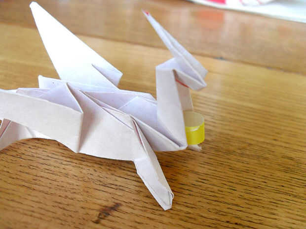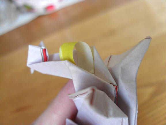 Cuando el dragón está completo, cortar un pequeño rectángulo de una hoja limpia de papel de origami.