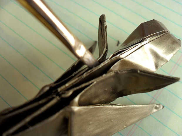Habrá unos lugares poco que pintura de aerosol no va a llegar. Utilice algún acrílico artesanal oro barato y un cepillo pequeño llegar y retocar áreas desnudas que le molestan.