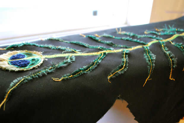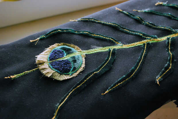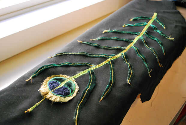 Cuando se limpia todo para arriba, el efecto plumoso del terciopelo inexactas-out está claro. Voila! Es una pluma de pavo real sólida base.
