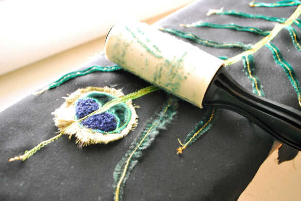 A veces la mejor herramienta es tu propia mano. Utilizo mis uñas rayar cada fronda de terciopelo hasta que los bordes están completamente desgastados. Esto hace un tremendo lío, así que después de cada pieza es bien difusa es buena a la pelusa! Cinta rodillo pelusa removedores hacen el truco. También se puede utilizar un rollo de cinta o una aspiradora con un accesorio de boquilla de mano del embalaje. Aspiradoras no desperdicies tanta cinta, pero si usas uno guarde mantenga una firme en la tela. De lo contrario puede tener a su pluma en el vacío. Esto le hará triste.