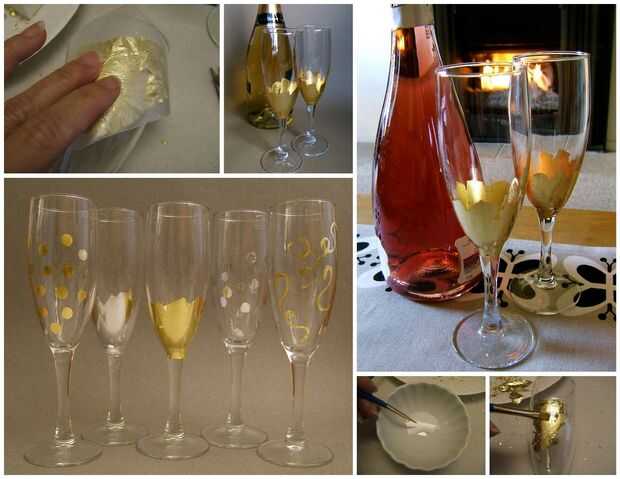Flautas como estos se venden por paquete en tiendas, pero puedes hacerlos en casa, personalizarlos y por una fracción del costo. Compré estas gafas en el almacén del dólar, el adhesivo debajo de cinco dólares, la hoja, debajo de diez. Increible, justo?! Ahora imagínese llevar a una cena, o dar como regalo de bodas junto con una buena botella de fizz. Usted está listo para celebrar e impresionar a los diablos de la gente. Va usted!