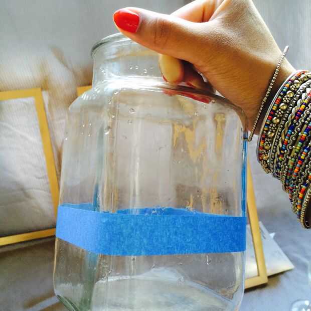 Limpiar el vaso y colocar cinta de pintor uniformemente alrededor de él.