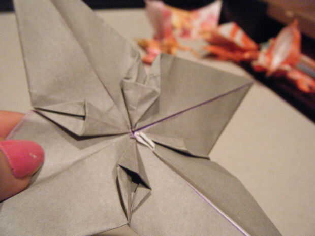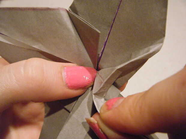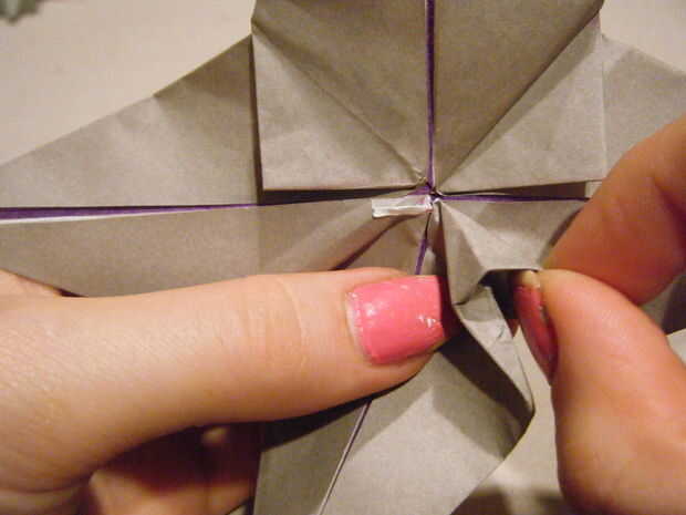 Tuck los puntos pequeños en los pliegues de los pétalos dentro del modelo (ver fotos).