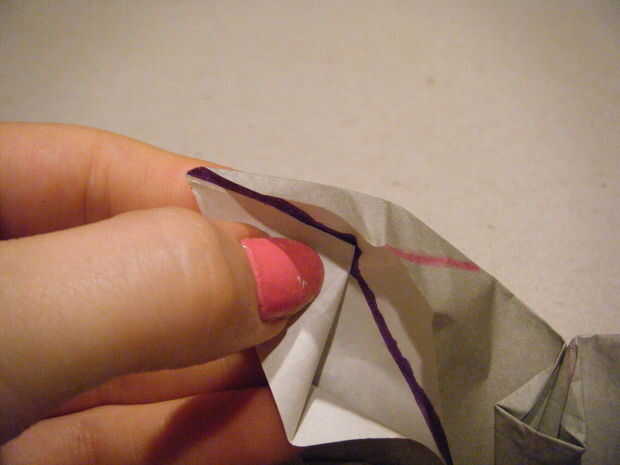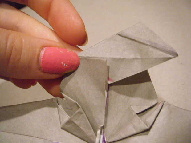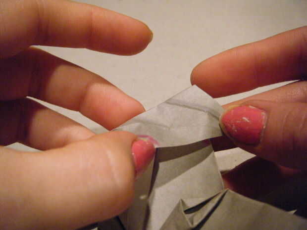 3. Valle doblar la aleta derecha sobre la izquierda.