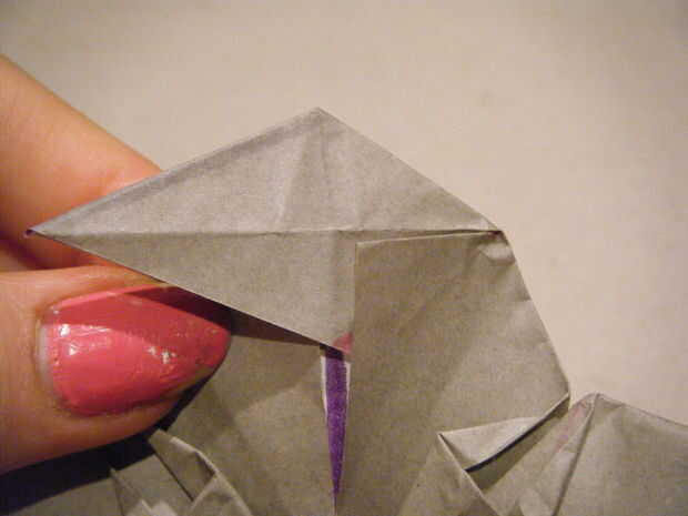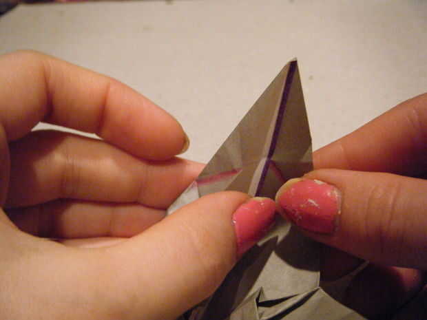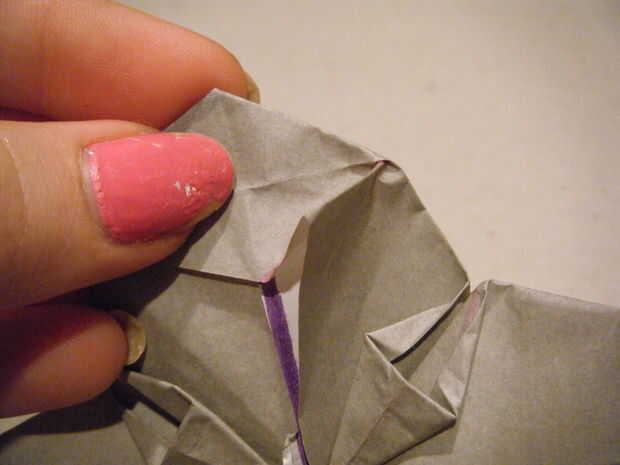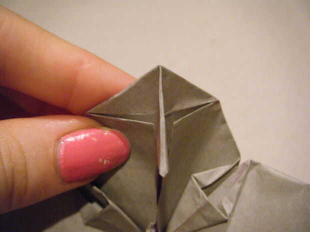 Orquídeas zapatilla dorada de origami (11 / 20 paso)